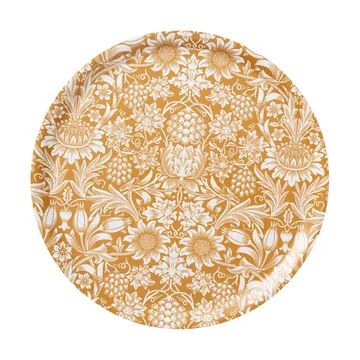 Sunflower brett Ø 38 cm fra svenske Klippans yllefabrik er laget av FSC-sertifisert laminert bjørkefiner med et mønster designet av William Morris. En rund brett er perfekt for servering av forfriskende drikke på varme sommerdager.