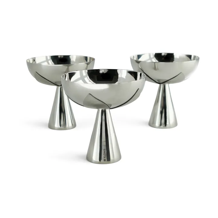 Blad serveringsskål Ø11 cm fra KLONG er laget av rustfritt stål og inspirert av Eva Schildts kjærlighet til iskrem. Skålen minner om de klassiske italienske isbegerne, men tilbyr en mer elegant og luksuriøs følelse. Perfekt for å servere iskrem eller andre delikatesser med stil.