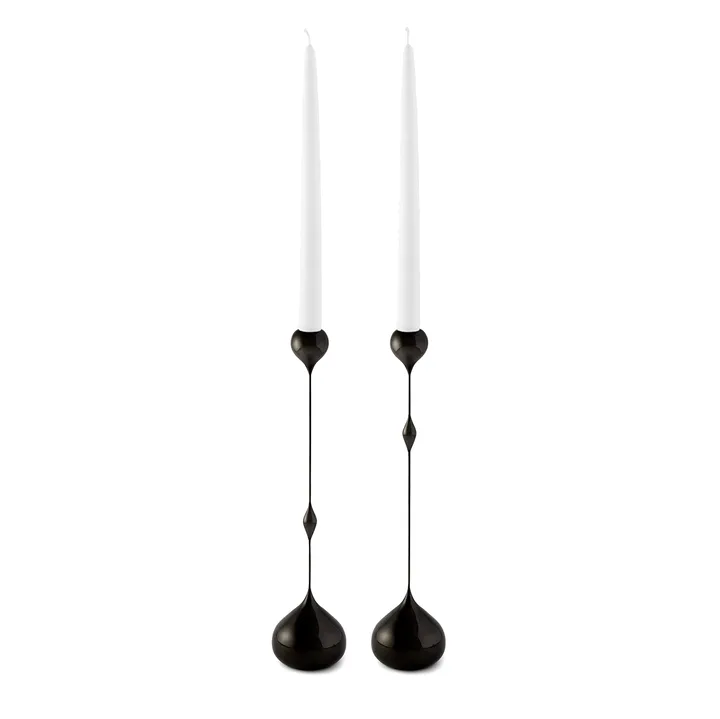Tender lysestake lav fra KLONG er en elegant og avskallet lysestake designet av Charlotte von der Lancken. Inspirert av Giacomettis skulpturer bærer den en skulpturell og grafisk karakter som skaper en langstrakt, nesten skåret silhuett i rommet. Den lave modellen er perfekt til dekket bord eller som et par på sidebordet hvor den gir et mykt, fokusert skjær. En tidløs detalj som løfter hjemmets atmosfære og fungerer like godt alene som i gruppe.