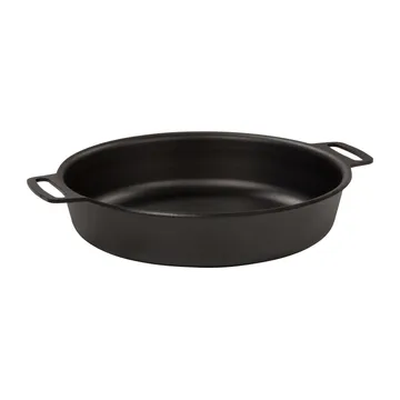 Kockums stekepanne/paiform fra Kockums Jernverk er en solid svenskprodusert panne i karbonstål som føles klar til bruk med én gang — forhåndsinnbrent med vegetabilske oljer for best mulig start. Den tåler høye temperaturer og fordeler varmen jevnt, perfekt til steking, roasting og til å bake paier. Bruk den på alle typer varmekilder og i ovnen; de doble håndtakene gjør den enkel å flytte. Et tilbehør med dekorative håndtakbeskyttere i Tärnsjöläder finnes for trygg og elegant servering. En allsidig panne som følger deg på kjøkkenet i mange år.