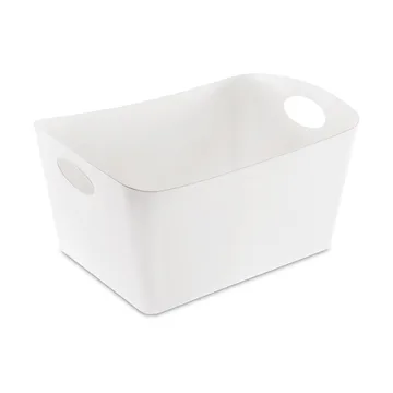 Boxxx oppbevaringsboks L 15 l fra tyske Koziol er en rektangulær boks laget av resirkulert plast og cellulose som bidrar til å spare over to tredjedeler av CO₂ sammenlignet med nye materialer. Kan med fordel brukes til å samle og sortere alt fra undertøy og verktøy til krydder. Den er også ideell for plassbesparende oppbevaring i hyller og skap. En miljøvennlig og praktisk løsning for hele familien!