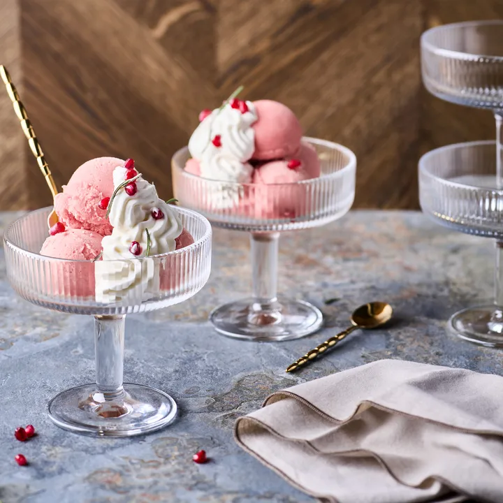 Coupe Alice dessertskål 33 cl 6-pk fra La Rochère er laget i glass og gir et elegant, men samtidig enkelt inntrykk. Disse ribbede dessertskålene rommer 33 cl og passer utmerket til desserter eller som drinkglass. Alice er en stabil og stabelbar skål som hever det dekkede bordet med sin tidløse sjarm.