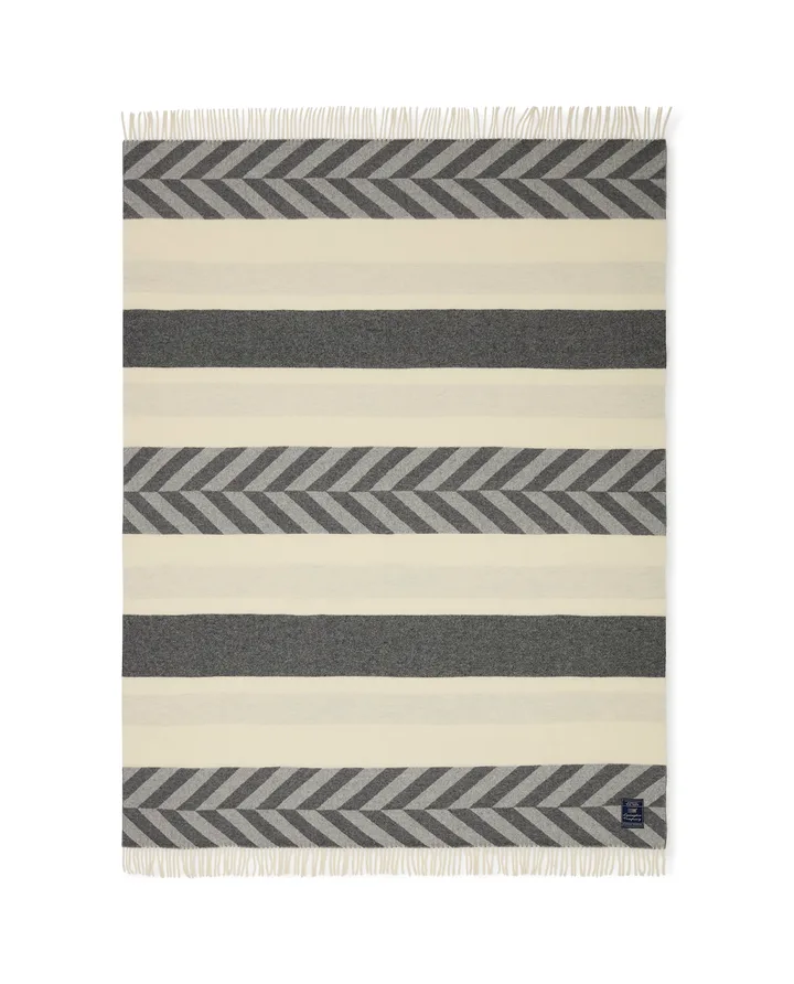 Herringbone Striped Recycled Wool pledd 130 x 170 cm fra svenske Lexington er laget av ull der 50 % er gjenvunnet. Herringbone er et stripete pledd med fiskebeinsmønster og dekorative frynser langs kortsidene. Et ullpledd er en fin interiørdetalj og passer like godt på sengen i soverommet som på sofaen i stuen.