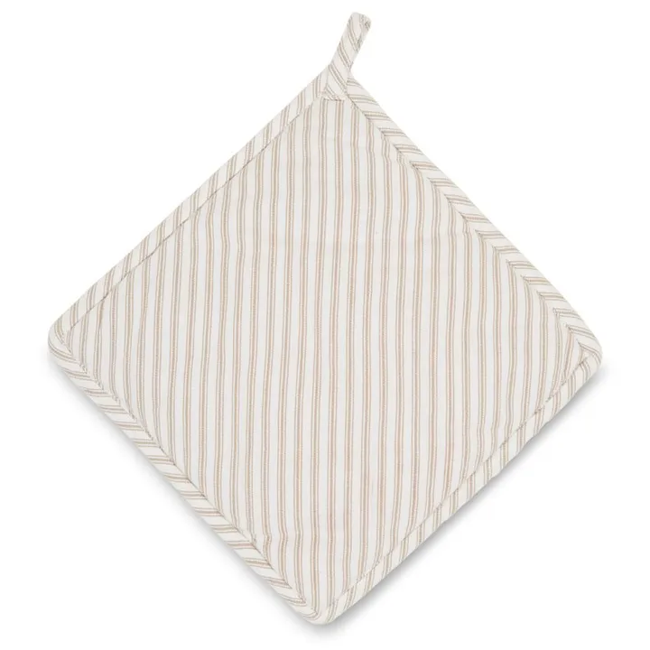 Icons Herringbone Striped grytelapp fra Lexington er en stripete grytelapp som beskytter hendene dine mot varme plater og ildfaste former. Grytelappen har en dekorativ Lexington-logotype på midten som gjør den veldig fin å ha hengende framme når den ikke er i bruk. Kombiner gjerne grytelappen med grytevotten i samme mønster for en fin helhet.