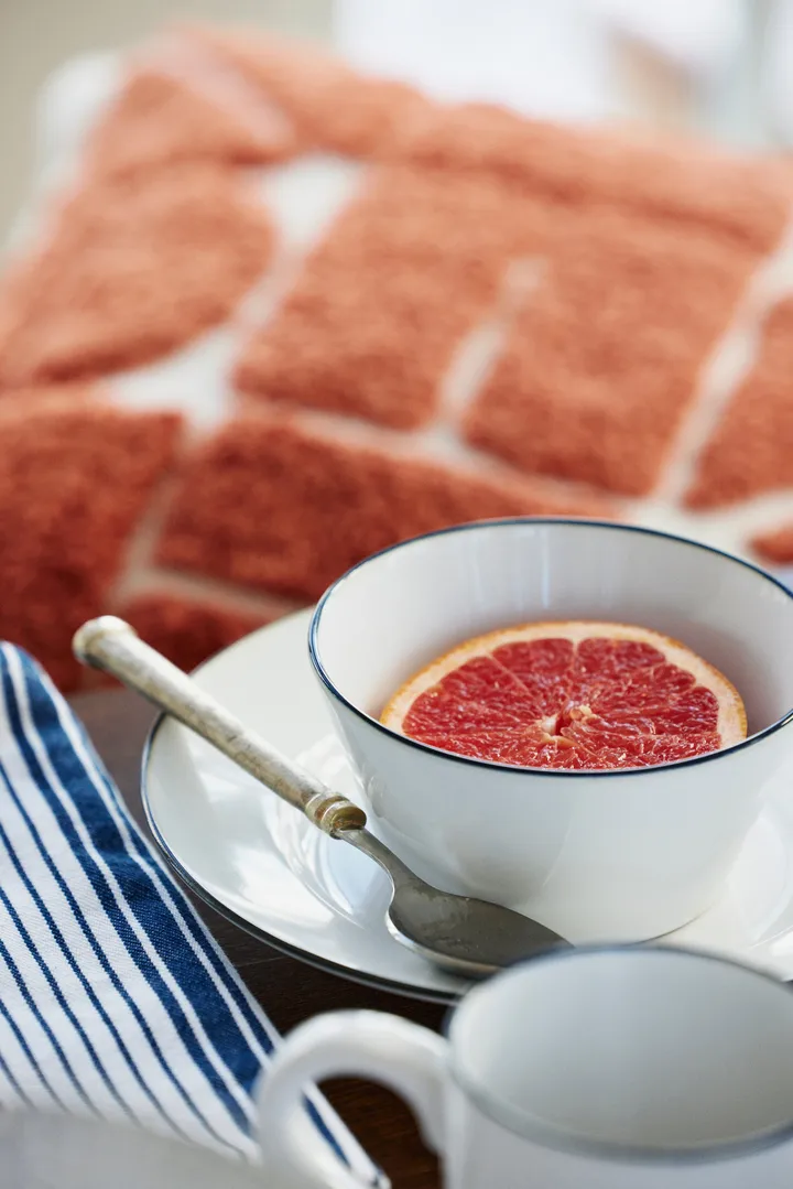 Putevar Rug Graphic Cotton Canvas 50x50 cm fra Lexington er laget av 100% bomull. Dette kvadratiske putevaret har et unikt geometrisk design og en matteliknende tekstur. Den klare oransje fargen gir rommet en umiddelbar fargeinjeksjon. Produsert i en sertifisert grønn fabrikk for ekstra holdbarhet.
