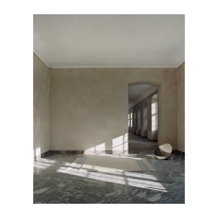 Humble Act ullteppe 140 x 200 cm fra danske Linie Design er et håndknyttet teppe med dekorative frynser på kortsidene. Det myke tofargede teppet passer like bra ved sengen på soverommet som i stuen.