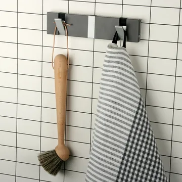 Loca Knax knaggrekke 20 cm kompositt fra LoCa er en smart og elegant kleshenger designet av Harrit & Sørensen. De fjærende krokene felles enkelt ut og holder jakker og håndklær stødig på plass, og når de ikke er i bruk felles de automatisk inn — genialt og enkelt. Hengeren er laget i slitesterk DuPont™ Corian® kompositt og leveres med to skruer for enkel veggmontering. Perfekt i gangen, på badet eller bak døren der du ønsker en diskret men funksjonell løsning for hverdagens oppbevaring.