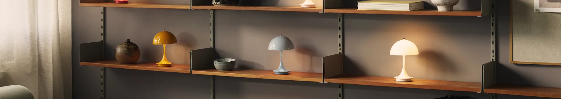 Lamper i Panthella-serien bruker ulike typer pærer. Noen har innebygde pærer og andre går faktisk på batteri og kan lades!