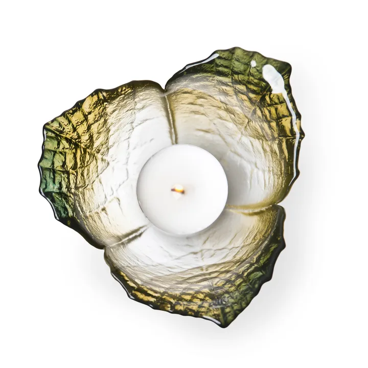 Folia lysskål er formgitt av Mats Jonasson for Målerås glassbruk. Den vakre lysskålen i håndmalt krystallglass består av tre blader som til sammen danner en skål der et telys kan plasseres. Telysestaken er laget av dyktige håndverkere i Målerås og leveres i en fin gaveeske.