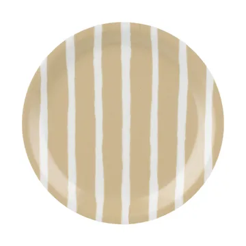 Piccolo glassbrikker fra Marimekko er en rund glassbrikke i laminert bjørkefinér med det ikoniske mønsteret Piccolo av Vuokko Eskolin-Nurmesniemi. Den håndmalte stripingen fra 1953 gir en livlig grafisk følelse på borddekkingen og beskytter samtidig bordet mot glassringer. Den glatte, slitesterke overflaten gjør underlaget enkelt å tørke av med en fuktig klut eller å vaske for hånd. Perfekt til hverdag og fest, alene eller i gruppe for et enhetlig uttrykk på brett, sofabord eller spiseplass.