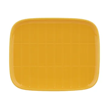 Tiiliskivi tallerken 12 x 15 cm fra Marimekko er en rektangulær Oiva-tallerken i stentøy designet av Sami Ruotsalainen med mønsteret Tiiliskivi skapt av Armi Ratia. Tallerkenen tåler oppvaskmaskin, ovn, mikrobølgeovn og fryser, noe som gjør den både vakker og praktisk i hverdagen. Perfekt til frokost, småretter eller som serveringsfat ved dekkingen — når den ikke er i bruk blir den en fin interiørdetalj på kjøkkenet. Fjern klistremerket fra bunnen før første bruk.