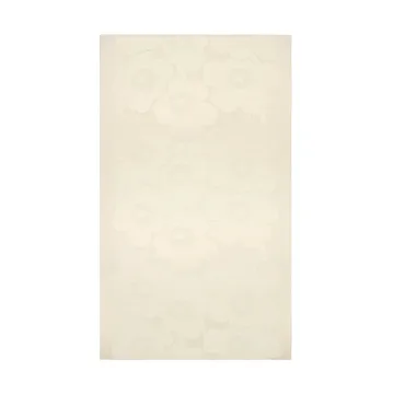 Unikko duk 140x250 cm fra finske Marimekko kler det vakre Unikko-mønsteret skapt av formgiverne Maija og Kristina Isola. Det blomstrete Unikko-mønsteret har blitt ett av Marimekkos mest gjenkjennelige mønstre. Den rektangulære bomullsduken tilfører et elegant uttrykk til spisebordet og beskytter samtidig bordplaten mot søl. Skap en vakker dekket bord med Unikko duk både til hverdag og fest, og avslutt med å plassere ditt favorittservise.