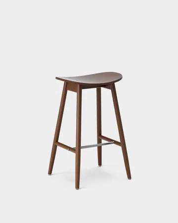 Icha barstol 65 cm fra svenske Massproductions har en form inspirert av både skandinaviske og japanske designtradisjoner. Barstolen har en slank men likevel sterk konstruksjon som gjør at den passer like godt hjemme som i offentlige miljøer.