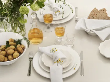 • VedlikeholdsrådKan vaskes i oppvaskmaskin Kan brukes med mikrobølgeovn Kan fryses Ikke ovnsbestandig Unngå å plassere produktet direkte på overflater som er følsomme for fuktighet, da dette kan etterlate flekker på overflaten. Ikke legg i vann. Mørke flekker kan oppstå - det er fra det rustfrie stålet. Bruk skyllemiddel for å gjøre keramikken mindre følsom for disse merkene. Metallmerkene kan vanligvis fjernes ved å gni forsiktig med pussemiddel.