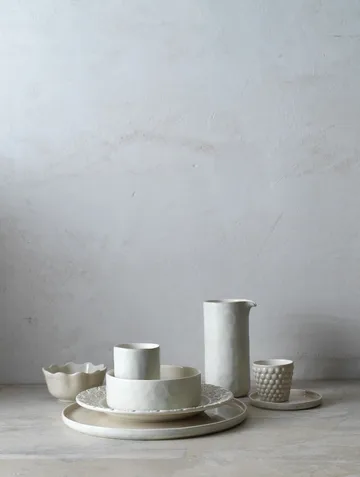 • VedlikeholdsrådKan vaskes i oppvaskmaskin Kan brukes med mikrobølgeovn Kan fryses Ikke ovnsbestandig Unngå å plassere produktet direkte på overflater som er følsomme for fuktighet, da dette kan etterlate flekker på overflaten. Ikke legg i vann. Mørke flekker kan oppstå - det er fra det rustfrie stålet. Bruk skyllemiddel for å gjøre keramikken mindre følsom for disse merkene. Metallmerkene kan vanligvis fjernes ved å gni forsiktig med pussemiddel.