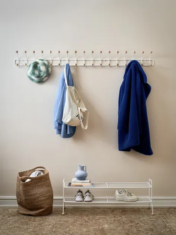 Bill Horizontal XL fra svenske Maze er designet av Louise Hederström og hjelper deg med å holde styr på jakkene i gangen og klærne på barnas soverom. Dens enkle og tidløse utseende passer godt inn i alle typer hjem og interiør og hjelper deg med å holde bedre orden både i gangen, på badet og på soverommet. Den er laget av en klassisk blanding av tre og metall og blir raskt en dekorativ detalj uansett hvor den plasseres.