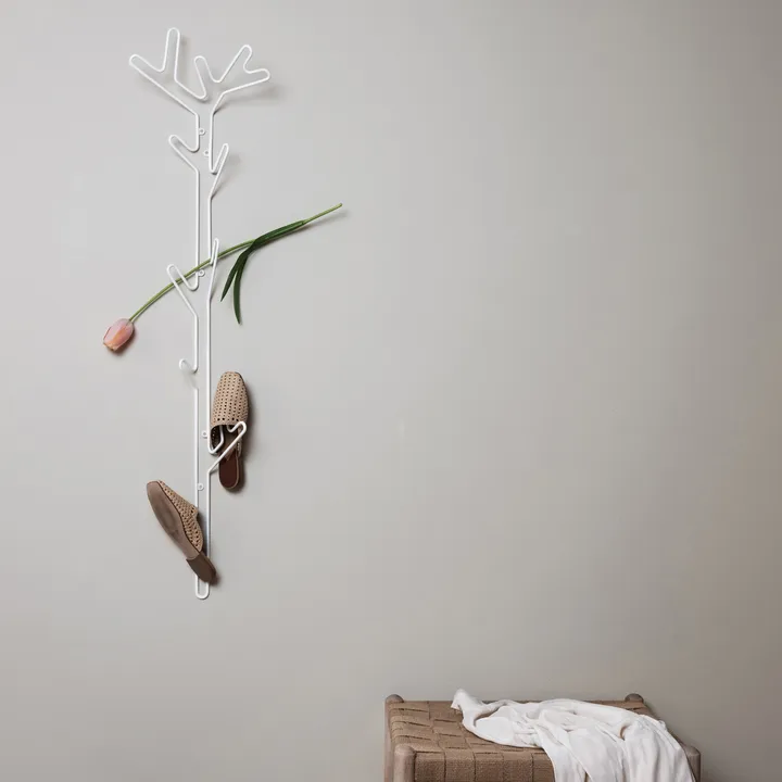 Branch henger fra Maze er en lang henger designet av Louise Hederström i serien Nature. Inspirert av et tre utnytter den vertikal plass og passer perfekt i trange ganger eller bad der veggflaten er begrenset. Med 12 kroker i varierende høyde gir den smart oppbevaring for jakker, vesker og håndklær uten å ta mye plass i bredden. Kombiner med andre produkter i serien for et helhetlig uttrykk. Slow Production-prinsippet innebærer gjennomtenkt design, ansvarlig produksjon og resirkulerte materialer — et bærekraftig valg for hjemmet.