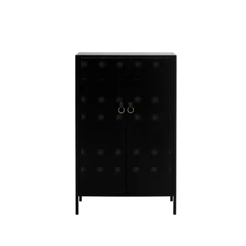 Francis skap fra Maze er en elegant del av Maze Interiors Pieces-kolleksjonen. Håndlaget i Småland, består det av perforert metall, tre og lærdetaljer. Skapets design gjør det allsidig og egnet for ulike rom. Med tre avtakbare hyller tilpasser det seg etter dine behov og kan enkelt romme alt fra støvler til sko.