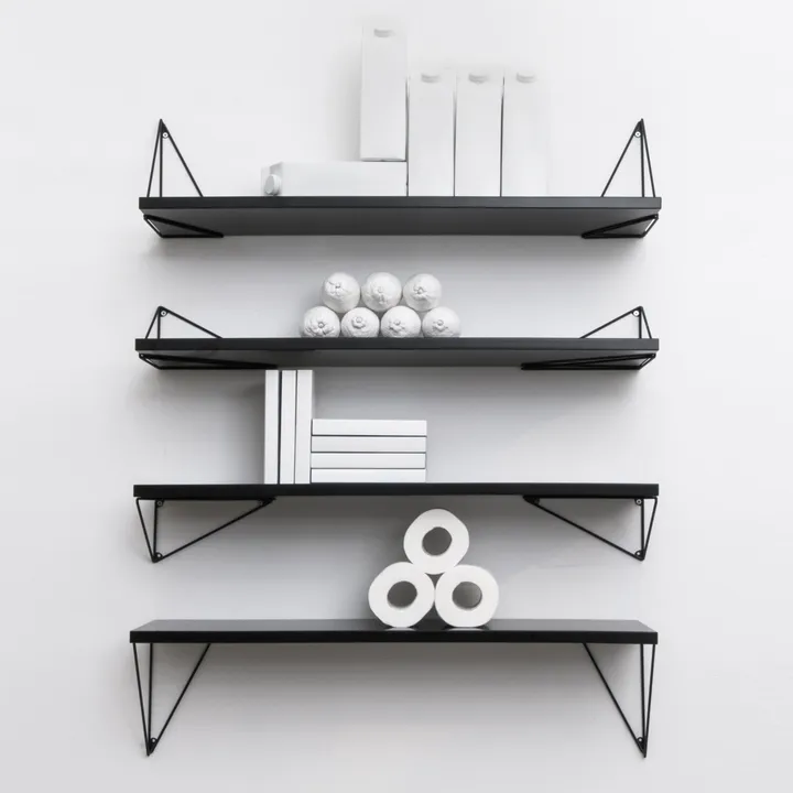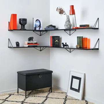 Pythagoras konsoll, 2-pakn. fra Maze er et genialt konsollsystem designet av Gustav Rosén som lar deg lage personlige hyller hjemme. De trekantformede konsollene kan festes på fire forskjellige måter, noe som gir fleksibel design og leken geometri i stue, soverom eller kjøkken. Konsollene leveres i 2-pakn. og er laget i pulverlakkert stålkfil for stabilitet og lang holdbarhet. To festebraketter medfølger som sikrer hyllen i de forborede hullene, noe som gjør monteringen enkel og trygg. Perfekt for den som vil kombinere funksjon og form i innredningen.