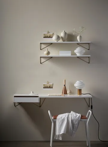 Den smidige oppbevaringsskuffen Pythagoras skuff S fra Maze er en del av Pythagoras hyllesystem som lar deg skape din helt unike hylle! Oppbevaringsskuffen er produsert i pulverlakkert MDF og eikefinér, og er designet av Gustav Rosén. Skuffen monteres på veggen sammen med festebrakettene i samme serie som kjøpes separat. Takket være skuffens forhåndsborede hull, som er tilpasset festene, kan du enkelt skape din drømmehylle med plass til det meste! Velg mellom flere farger.