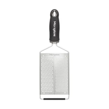 Gourmet Dual Blade rivjern 31 cm. Gourmet dual blade rivjern fra Microplane. Dette rivjernet fra Gourmet-serien er utstyrt med to blader, som gir mulighet for både fin og grov rivning. Perfekt for sitrusfrukter, nøtter, parmesan og krydder. Det ergonomiske håndtaket tilbyr komfort og enkelt grep, mens det fotoetsede bladets skarphet garanterer presisjon uten å knuse maten. Et allsidig verktøy for kjøkkenet med flere ulike rivingsalternativer, der hvert blad velges etter ønsket rivningsgrad.