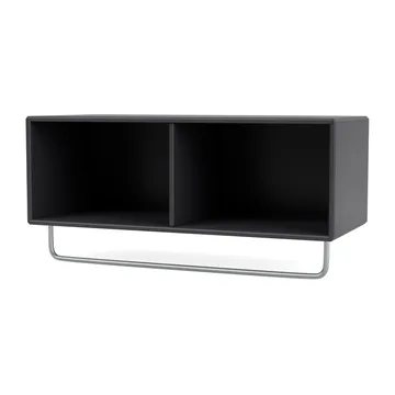 COAT hattehylle med klesstang fra danske Montana er laget av MDF og pulverlakkert stål og designet av Peter J. Lassen. En perfekt hylle å ha i gangen der du kan henge opp jakken på en av krokene og legge votter, luer og skjerf på hyllen over. Kombiner hattehyllen med flere deler fra Montanas allsidige sortiment for en enhetlig følelse.