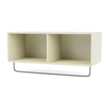 COAT hattehylle med klesstang fra danske Montana er laget av MDF og pulverlakkert stål og designet av Peter J. Lassen. En perfekt hylle å ha i gangen der du kan henge opp jakken på en av krokene og legge votter, luer og skjerf på hyllen over. Kombiner hattehyllen med flere deler fra Montanas allsidige sortiment for en enhetlig følelse.