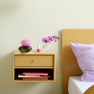 Dash er et lite nattbord fra Montana. Det lille nattbordet er perfekt til oppbevaring av nødvendigheter og monteres enkelt på veggen ved siden av sengen takket være de forborede hullene. Det fungerer like godt i gangen som en vakker oppbevaringsenhet. Nattbordet er tilgjengelig i alle Montanas farger og kan leveres med oppheng, ben, sokkel eller hjul.