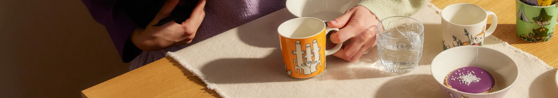 Arabia et bredt utvalg av keramikk og tekstiler med sjarmerende illustrasjoner basert på Tove Janssons ikoniske Mummi-fortellinger.