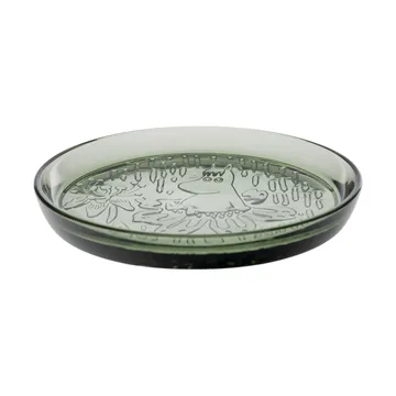 Moomin tallerken Ø15,5 cm fra Moomin Arabia er laget av glass og inspirert av Tove Janssons roman Trollkarlens hatt. Tallerkenen er rikt detaljert og fanger den magiske stemningen i Mummidalen, hvor Mummifamilien leker gjemsel. Perfekt for å tilføre en dose lekenhet og Mummimagi til borddekkingen.
