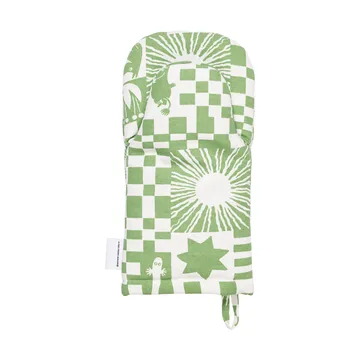 Mummi grytevott Fest 15x34 cm fra Moomin Arabia er laget av 100 % økologisk bomull og prydes av livfulle mummimotiv fra 1950-tallet. Den myke, men varmebestandige bomullsgrytevotten beskytter hendene ved matlaging og baking, samtidig som den sprer en nostalgisk og sommerlig følelse på kjøkkenet. Perfekt for den som ønsker å tilføre litt mummimagi i hverdagen.