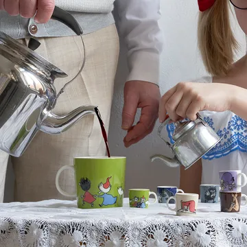 Disse minikoppene med Mummimotiv fra Moomin Arabia er den andre delen i serien med minikopper. Dette settet består av seks kopper med de samme illustrasjonene som de klassiske koppene fra 2001–2005, men i miniformat. Disse minikoppene har et motiv av noen av innbyggerne i Mummidalen: Stinky, Sniff, Filifjonka, Hemulen, Hufsa samt Tufsla og Vifsla. Høsten 2019 ble de seks første klassiske koppene lansert i miniformat. Suppler samlingen din med dette andre settet med klassiske kopper i miniformat som ble lansert høsten 2020.