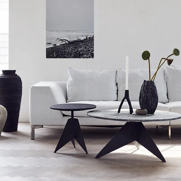 Aion lysestake XL 22 cm fra danske Muubs er en skulpturell interiørdetalj laget av rustikt støpejern. Den høye og asymmetriske lysestaken står på tre ben som skal minne om greiner, og blir en staselig detalj i et stilleben eller på det dekkede bordet.