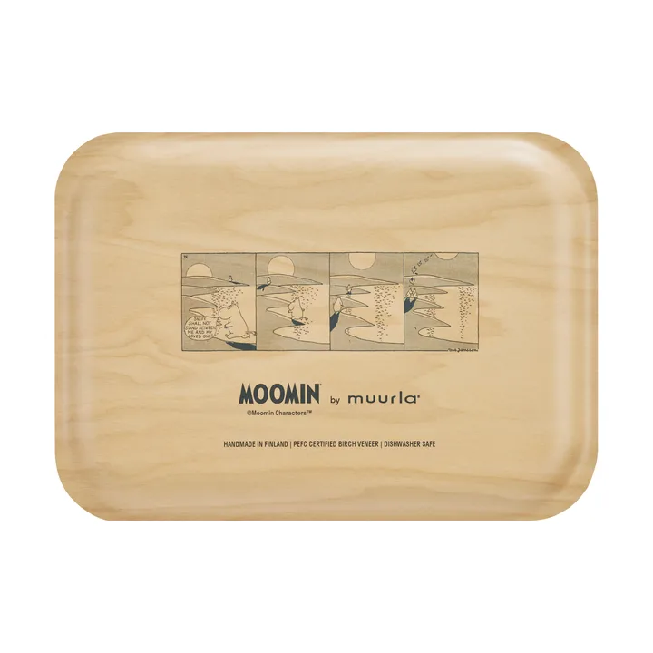 Moomin brett 20x27 cm fra Muurla er et rektangulært serveringsbrett laget av bjørkfinér med melaminbelegg. Det sjarmerende brettet er dekorert med Mummimotiv fra Tove Janssons vidunderlige verden, noe som gir glede til familiens måltider eller kaffestunder. Den slitesterke og lettstelte designen gjør brettet perfekt for servering av mat og drikke samt som en dekorativ detalj på kjøkkenet. Utforsk Muurlas brede sortiment av brett og andre produkter prydet av de elskede trollene.