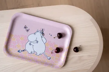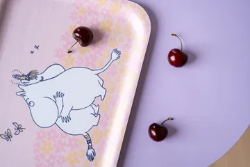 Moomin brett 20x27 cm fra Muurla er et rektangulært serveringsbrett laget av bjørkfinér med melaminbelegg. Det sjarmerende brettet er dekorert med Mummimotiv fra Tove Janssons vidunderlige verden, noe som gir glede til familiens måltider eller kaffestunder. Den slitesterke og lettstelte designen gjør brettet perfekt for servering av mat og drikke samt som en dekorativ detalj på kjøkkenet. Utforsk Muurlas brede sortiment av brett og andre produkter prydet av de elskede trollene.