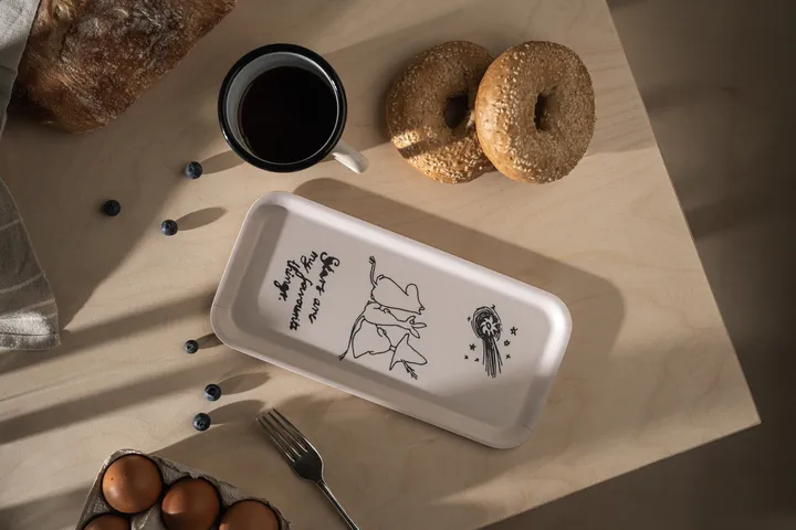 Mummi 80 brett 13x27 cm fra Muurla er en unik skapelse designet av Tove Jansson. Denne håndlagde serveringsbretten er laget av holdbart bjørkfinér og har en matt laminering som gir en slitesterk overflate. Bretten tåler oppvaskmaskin og er perfekt for å servere både hverdagsmåltider og ved spesielle anledninger. Med sitt unike motiv er denne bretten både praktisk og dekorativ.