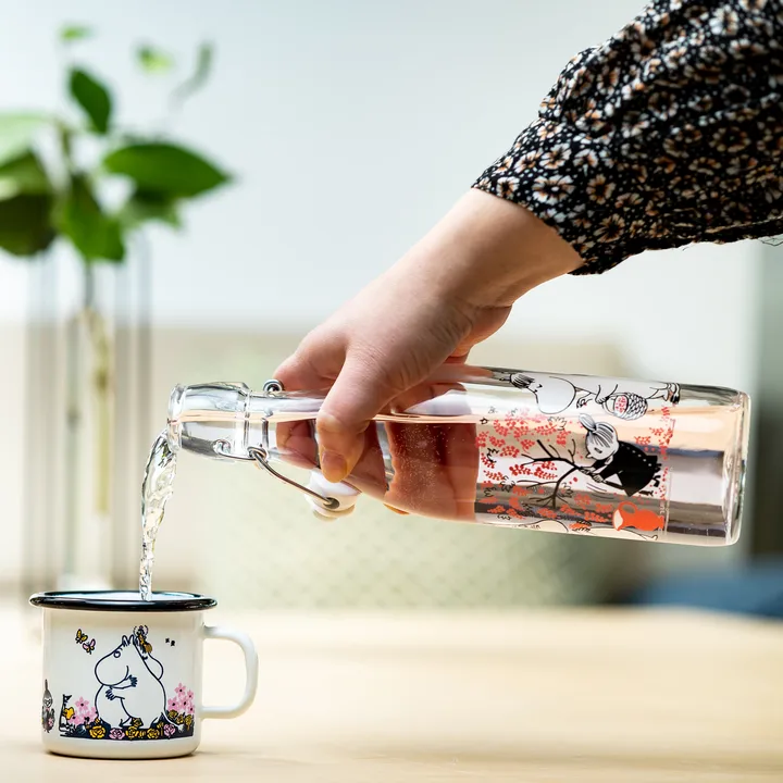 Mumin glassflaske inngår i Mummi-serien fra finske Muurla. Flasken er dekorert med motiv fra Tove Janssons elskede fortellinger om Mummi og vennene hans. Den søte flasken kan brukes til både oppbevaring og servering og er perfekt å gi bort som gave. Kombiner den gjerne med øvrige produkter i Mummi-serien!