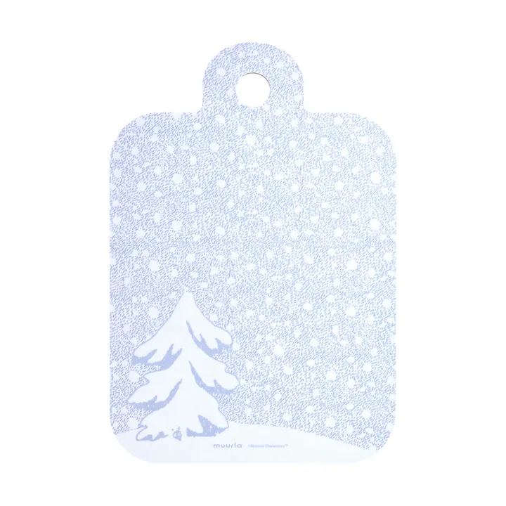 Mummi skjærefjøl 21x31 cm fra Muurla er både praktisk og dekorativ, inspirert av Tove Janssons elskede figurer. Produsert av bjørkfinér med matt laminering, fungerer den både til skjæring og servering. Skjærefjølen er pyntet med sjarmerende illustrasjoner på begge sider og tåler oppvaskmaskin, noe som gjør den perfekt både til hverdagsbruk og spesielle anledninger.