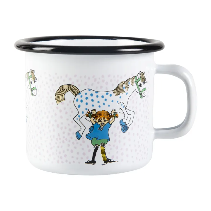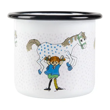 Pippi and the horse emaljekopp 2,5 dl fra Muurla inviterer til en leken kopp te eller kaffe. Med det fargerike og ikoniske designet av Pippi og hennes trofaste følgesvenn blir hvert øyeblikk ved koppen en fest. Den robuste emaljekonstruksjonen gjør den også ideell for utendørsbruk, perfekt for camping og turer i naturen.
