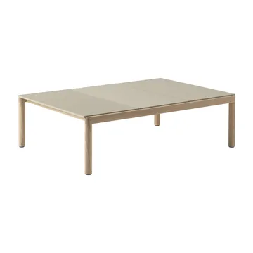 Couple 2 Plain-1 Wavy salongbord 120 x 84 x 35 cm fra danske Muuto er laget av massiv eik og et taktilt keramisk steinmateriale der kolleksjonen har ulike utførelser av praktisk glatte og skulpturelt bølgende keramikkplater. Det enkle og minimalistiske Couple Coffee Table ble designet av Sylvain Willenz i 2023 med en diskret nikk til holdbarheten hos tegl både i estetikk og kvalitet. Velg din favoritt og kombiner med flere etter egen smak.