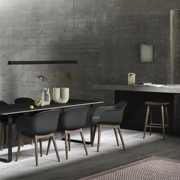 Fiber karmstol treben fra Muuto er skapt av Iskos-Berlin og kombinerer resirkulerbar plast med trefibre i et innovativt design. Utformet for komfort og funksjon, er hver linje nøye gjennomtenkt. Stolens letthet og allsidighet gjør den ideell for både spisestue og arbeidsplass. Finnes i flere farger, med eller uten polstring, og med ulike benvarianter. En bærekraftig og tilpassbar møbel for både hjem og kontor.