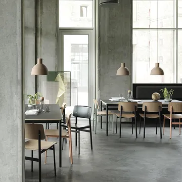 Loft Chair stol fra Muuto er designet av Thomas Bentzen og forener industriell enkelhet med skandinavisk varme. Stolen har et nett sete og rygg i eikfiner som møter et lett stativ i lakkert stål, en kontrast som gir både karakter og komfort. Loft passer rundt spisebordet, i lesekroken eller som ekstra sitteplass i stuen hvor den bidrar med både funksjon og form. En tidløs og ærlig design for hjemmet som føles like selvskreven i hverdagen som ved festligere anledninger.