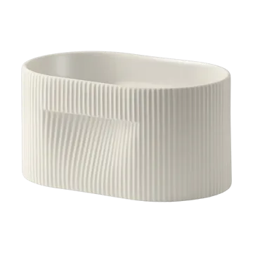 Ridge krukke 13 cm av Muuto er laget i leirgods med en matt overflate og en glasert innside som gir et solid og harmonisk uttrykk. Den subtile rillede kanten og de diskrete håndtakene gjør den både stilfull og praktisk. Perfekt for mindre planter, urter eller sukkulenter, og passer like godt på en vinduskarme som på et skrivebord eller en hylle. En tidløs detalj som løfter rommet og skaper en naturlig balanse i innredningen.