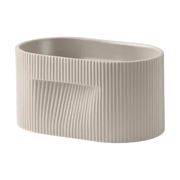Ridge krukke 13 cm av Muuto er laget i leirgods med en matt overflate og en glasert innside som gir et solid og harmonisk uttrykk. Den subtile rillede kanten og de diskrete håndtakene gjør den både stilfull og praktisk. Perfekt for mindre planter, urter eller sukkulenter, og passer like godt på en vinduskarme som på et skrivebord eller en hylle. En tidløs detalj som løfter rommet og skaper en naturlig balanse i innredningen.