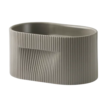 Ridge krukke 13 cm av Muuto er laget i leirgods med en matt overflate og en glasert innside som gir et solid og harmonisk uttrykk. Den subtile rillede kanten og de diskrete håndtakene gjør den både stilfull og praktisk. Perfekt for mindre planter, urter eller sukkulenter, og passer like godt på en vinduskarme som på et skrivebord eller en hylle. En tidløs detalj som løfter rommet og skaper en naturlig balanse i innredningen.