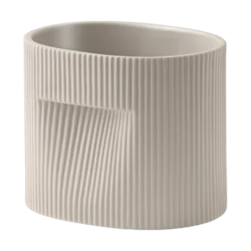 Ridge krukke 15 cm av Muuto er laget i stentøy med en matt overflate og en glasert innside som gir et solid og harmonisk uttrykk. Den subtile rillede kanten og de diskrete håndtakene gjør den både stilig og praktisk. Perfekt for mindre planter, urter eller sukkulenter, og passer like fint på en vinduspek som på et skrivebord eller en hylle. En tidløs detalj som løfter rommet og skaper en naturlig balanse i interiøret.
