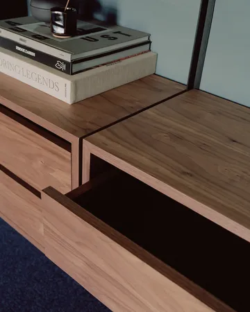 New Works skuffeseksjon 79x35 cm er en praktisk og funksjonell del til ditt hyllesystem. Med sine brukervennlige dimensjoner passer den godt for det meste, utmerket for arbeidsrom, stue eller soverom for å skape orden og ha viktige ting nær til hands. New Works skuffeseksjon er den perfekte møblementet for å optimalisere plassen din og skape en funksjonell og organisert atmosfære i hjemmet ditt.