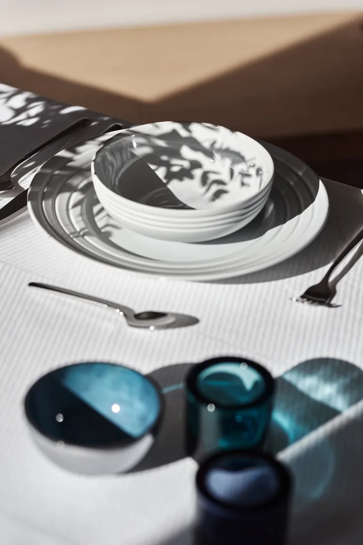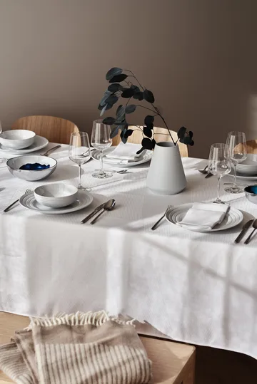 Geometric duk 147 x 250 cm fra svenske NJRD er en jaquardvevd duk i lin og bomull designet av formgiverduoen Bernadotte & Kylberg. Duken har en vakker struktur og et vakkert grafisk mønster i form av trekanter og andre geometriske figurer. I mønsteret finner vi også de strenge rette linjene som vi ofte ser i NJRDs produkter. Bordduken kan med fordel få være krøllete etter vask for en ekstra herlig følelse. La duken være basen for borddekkingen når du skaper skandinaviske øyeblikk med familie og venner i lang tid framover. Produktet tilhører NJRDs Edges-kolleksjonen.