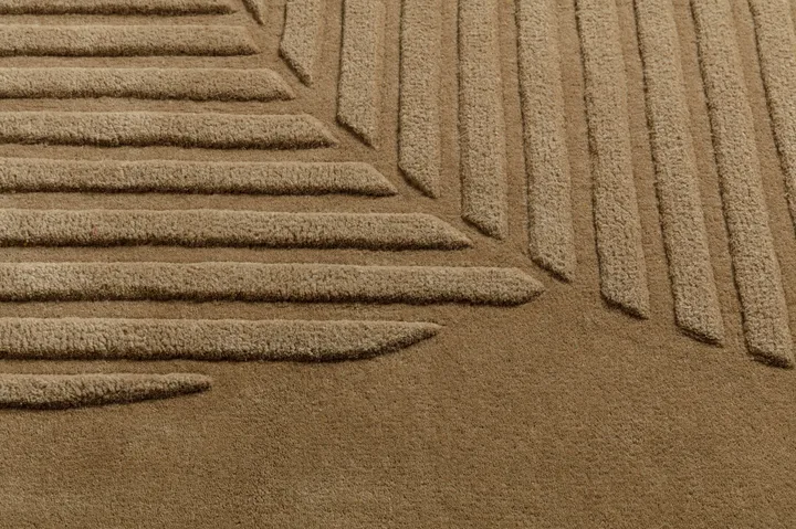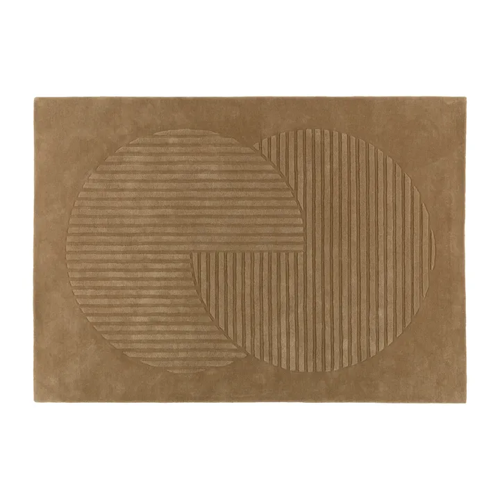 Levels ullteppe circles beige fra NJRD er et håndtuftet teppe i 100% nyzealandsk ull, designet av Bernadotte & Kylberg. Det grafiske motivet med to delvis overlappende sirkler og striping skapes med en spesiell skjæreteknikk som gir varierende luvhøyde og et levende uttrykk. Den tette, myke luven demper lyd, gir god komfort for føttene og en fin glans. Naturullens smussavvisende og vannavstøtende egenskaper gjør teppet lettstelt og brukbart både i stue og soverom — en tidløs detalj som løfter hjemmets atmosfære.