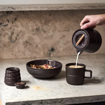 Lines sukkerskål fra svenske NJRD er en søt liten skål i blank vitro-porselen med nedsenkede linjer som er et kjennetegn på NJRDs porselenserie Lines, designet av Bernadotte & Kylberg. Det medfølgende lokket har et smart lite hull for en skje, slik at du alltid har skjeen i nærheten. Lokket har også en vakker tredetalj som minner om naturen. Vitro-porselen er et veldig slitesterkt materiale, og i kombinasjon med det gjennomtenkte designet vil sukkerskålen være en del av livet ditt i lang tid fremover. Den vakre runde sukkerskålen er fin å ha på kjøkkenbenken eller på spisebordet selv når den ikke er i bruk. Sammen med deg, familien og dine venner skapes nye skandinaviske øyeblikk ved å gjøre sukkerskålen til en naturlig del av både måltider og din innredning. Kombiner gjerne sukkerskålen med for eksempel krusene, melkekannen og tekannen fra samme serie til frokost, lunsj og kaffe. Du kan også blande og matche de forskjellige fargene hvis du ønsker et unikt og personlig preg, samtidig som de karakteristiske nedsenkede linjene gir en rød tråd gjennom borddekningen. Produktet tilhører NJRDs Edges-kolleksjonen.